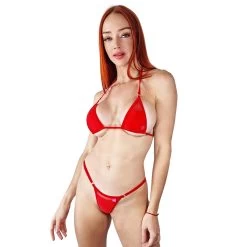 Ruby Red Micro Bikini: Intense Red and Red Micro Mesh Details in both top and bottom pieces. Perfect to turn the Heat Up and being the most provocative. Red Semi Sheer Micro Bikini.