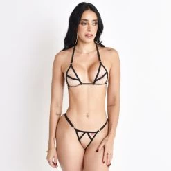 Sheer Nude Micro Bikini with Black Straps Key Features: