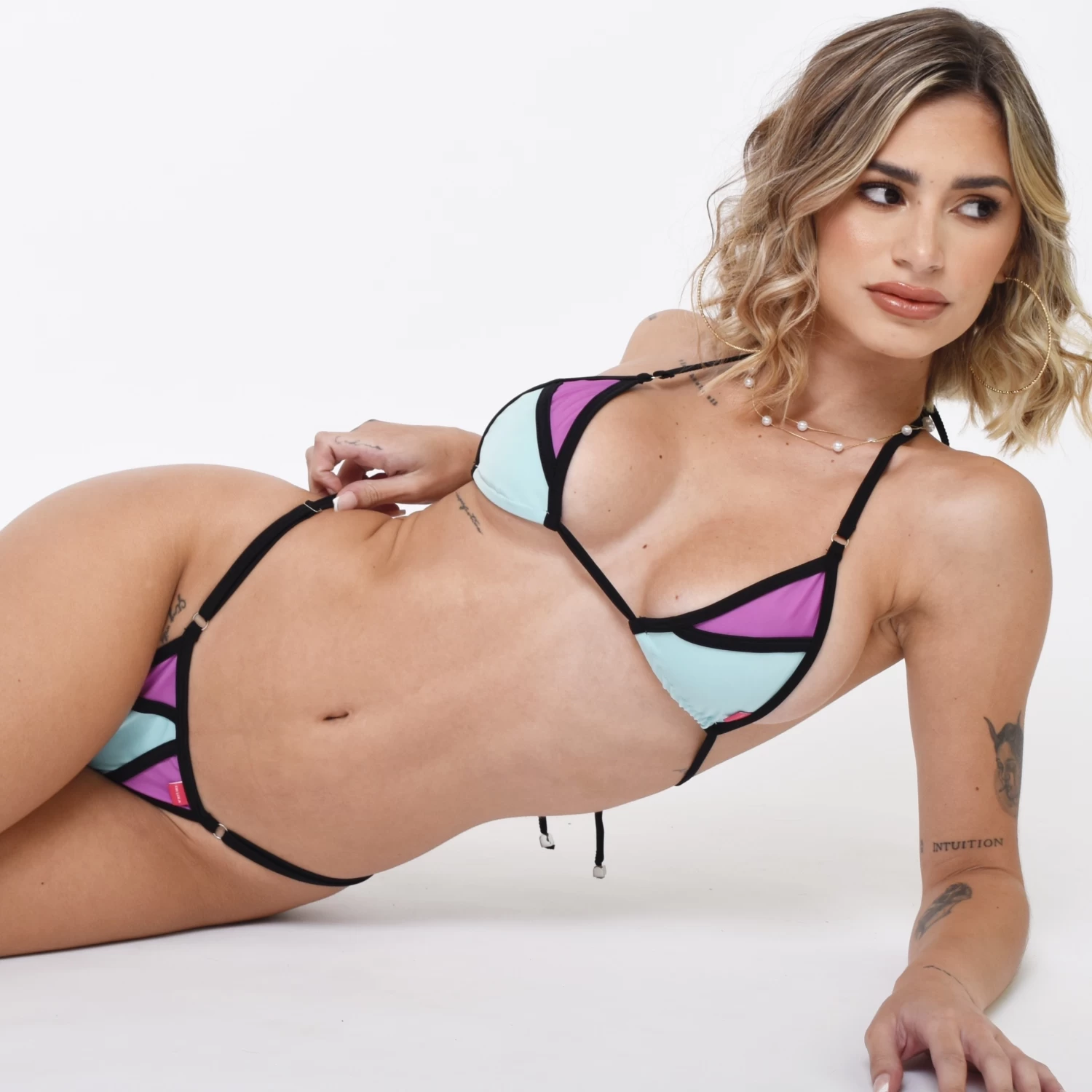Valentina’s Dream Micro Bikini | Turn heads and embrace the sunshine. This show-stopping two-piece takes your poolside look to a whole new level with its delicate colors and edgy black accents. The perfect balance of vibrant energy and sleek black detailing creates a truly unique and unforgettable style.